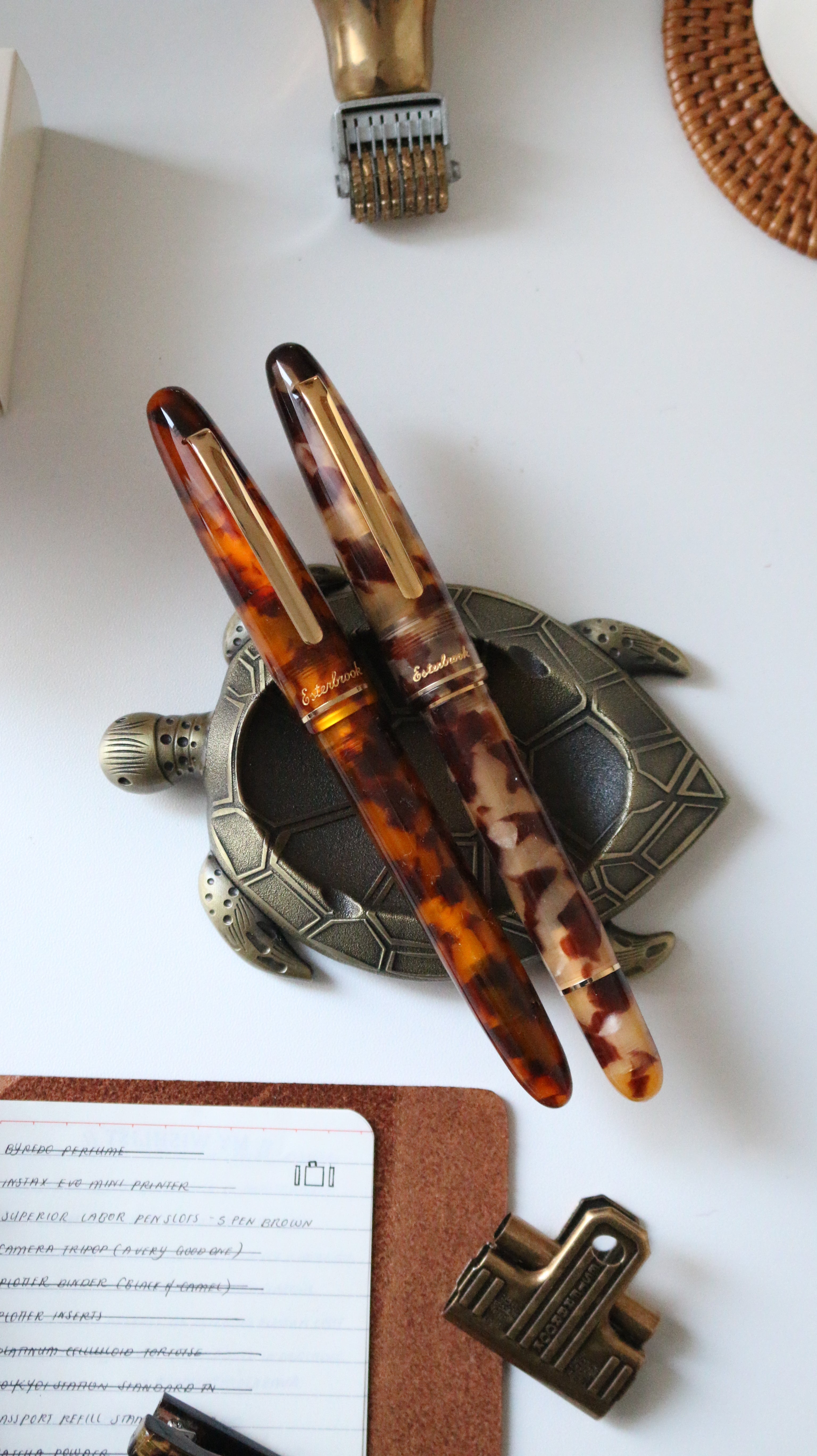 The Amber Tortoise Estie is a warm, nostalgic take on a classic Esterbrook favorite. Designed as a seasonal special release, this finish blends timeless character with modern writing performance.