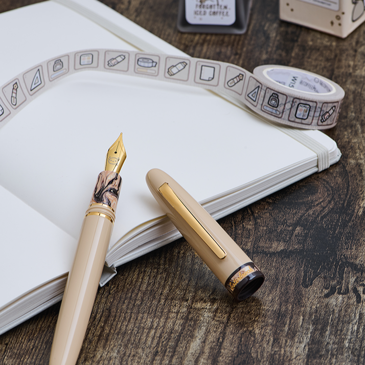 Esterbrook’s legacy of fine writing instruments meets the playful artistry of TheCoffeeMonsterzCo in this thoughtfully crafted collection. The custom Estie showcases expert craftsmanship with a design that’s as delightful to look at as it is to write with. Complementing the pen, the washi tape, blotter paper, and ink (released later this month!) feature charming, hand-drawn details that bring a sense of fun and personality to your desk. Every element of this collaboration is designed to inspire creativity, making it a must-have for writers, artists, and stationery lovers alike.